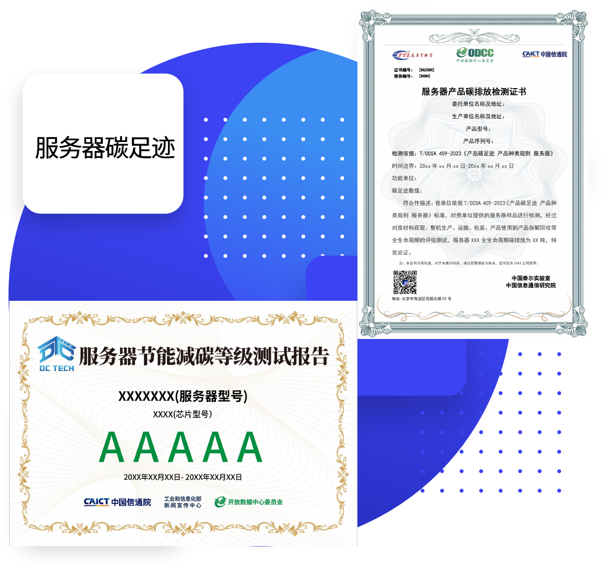 DC-Tech服务器节能减碳等级评估测试、服务器碳足迹评估测试由中国信息通信研究院开展测试。